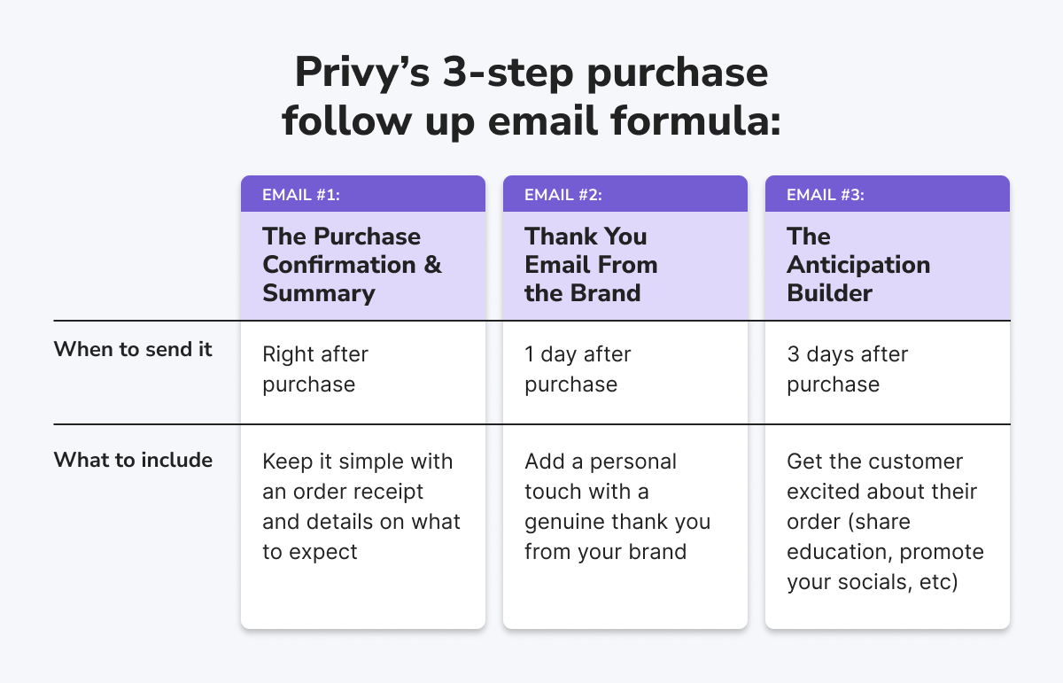 Ready to start with Purchase Follow-Up emails? Here’s a great formula to start with: