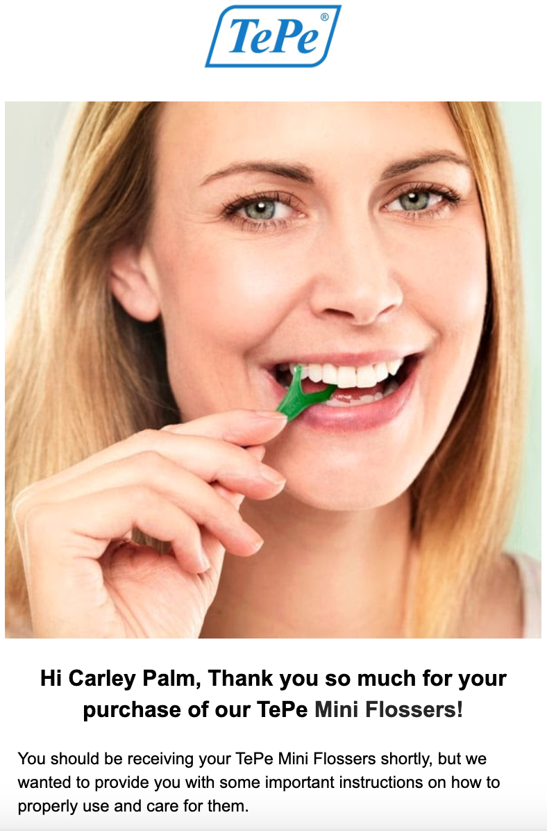 TePe Oral Health Care sends out targeted post-purchase emails based on the product the shopper purchased, providing a custom instructional guide on how to best use the product.