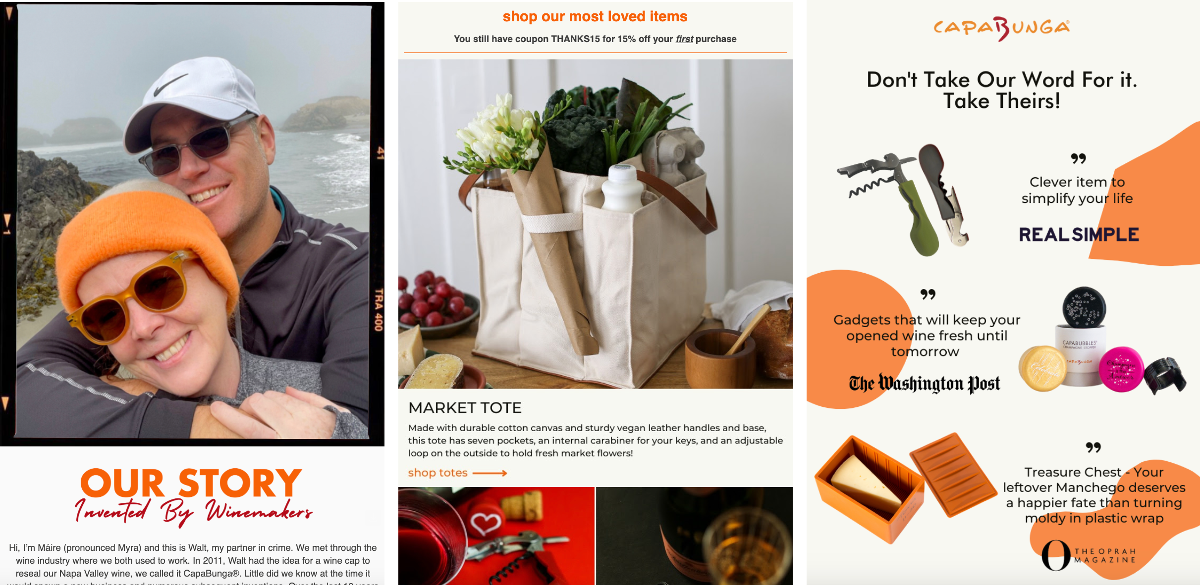 Capabunga has a set up 3 emails where they introduce themselves, showcase their bestsellers, followed by glowing reviews to help build trust.